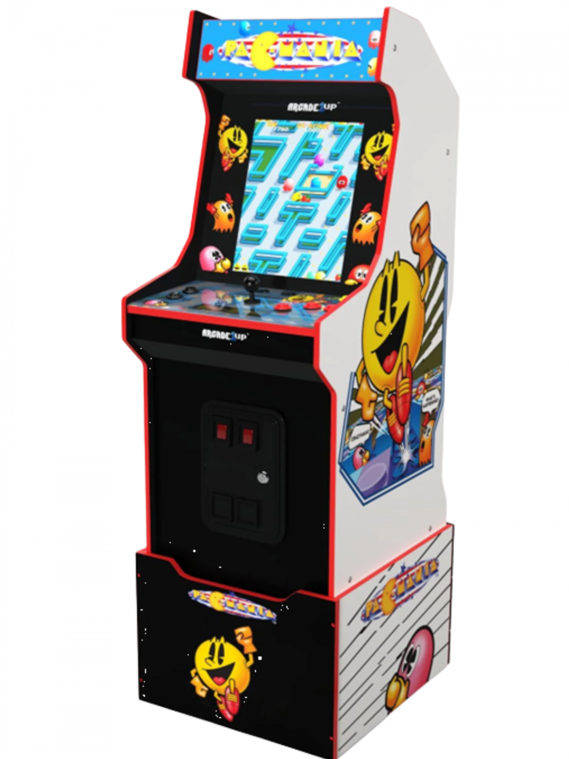 This Pac-Mania comes with a light up marquee, a matching graphic riser, and the following 14 games: