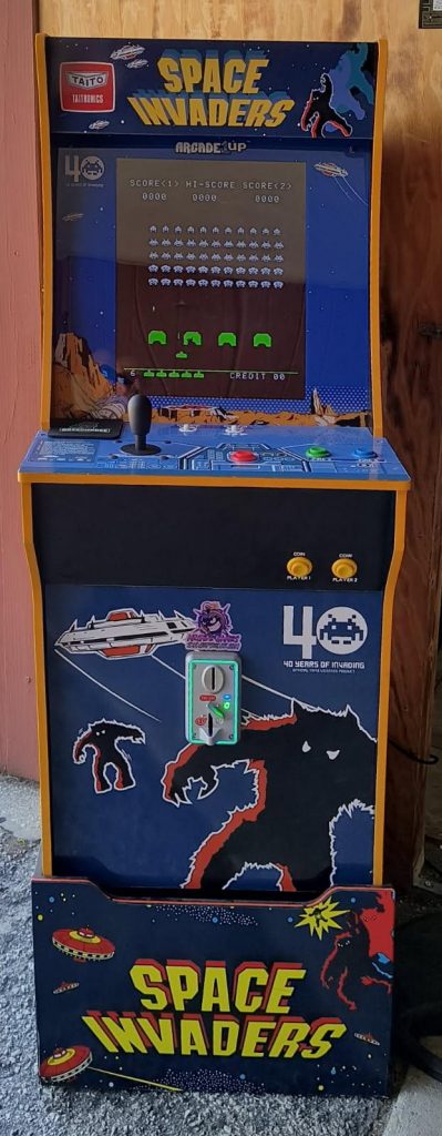 We have two different Space Invaders machines. The only difference is the control board. They are for rent for $150/4 hours each.
